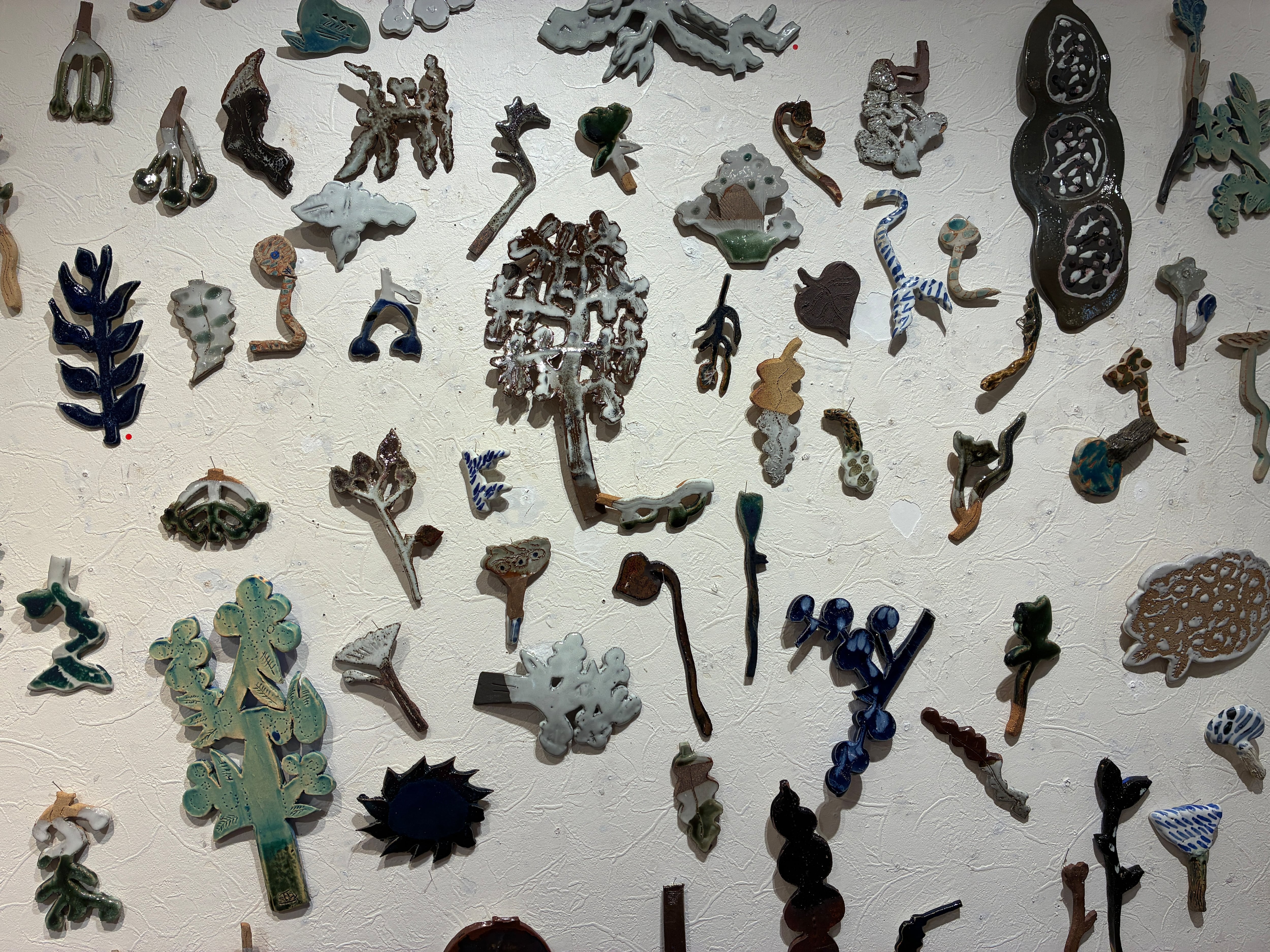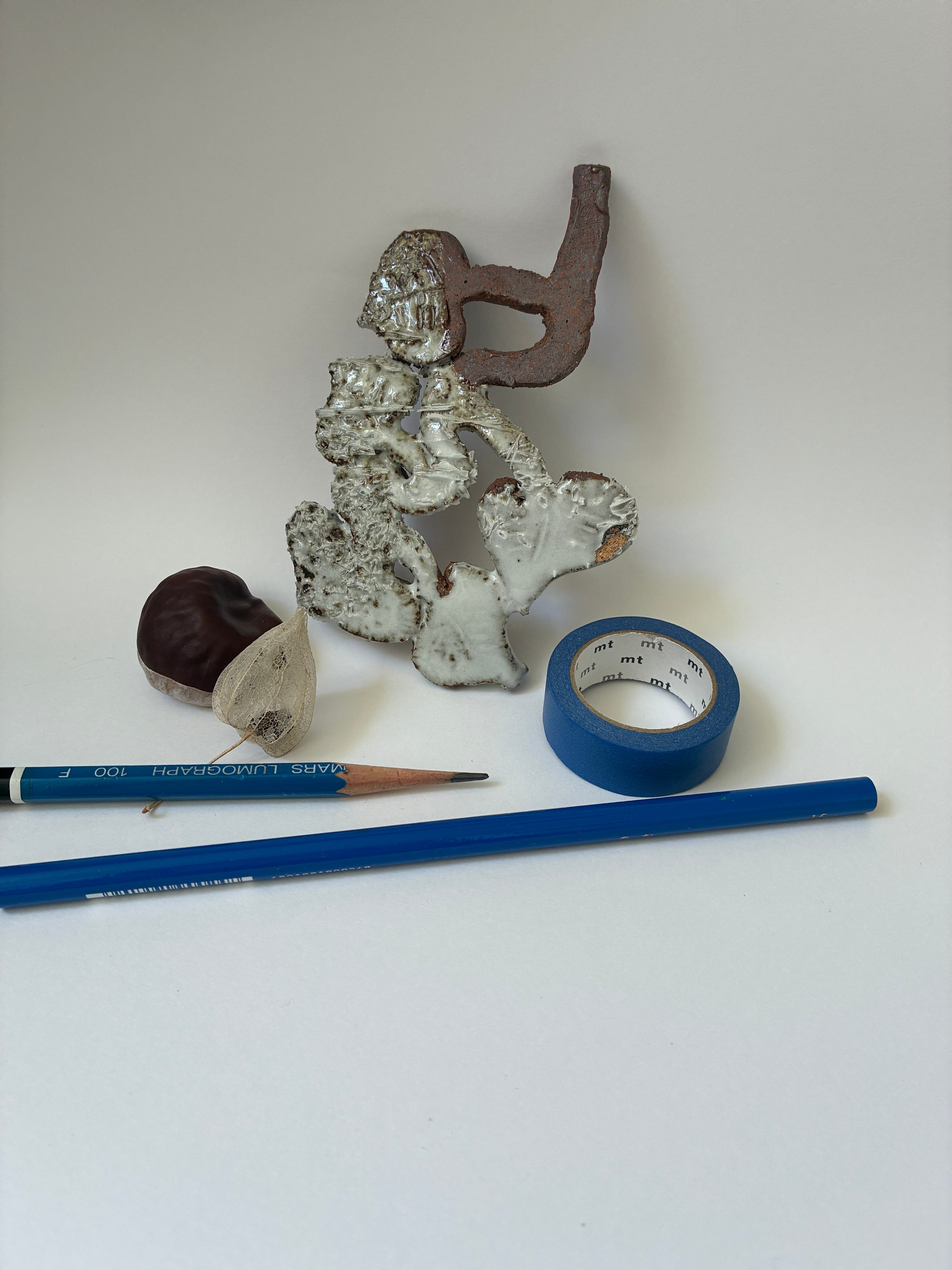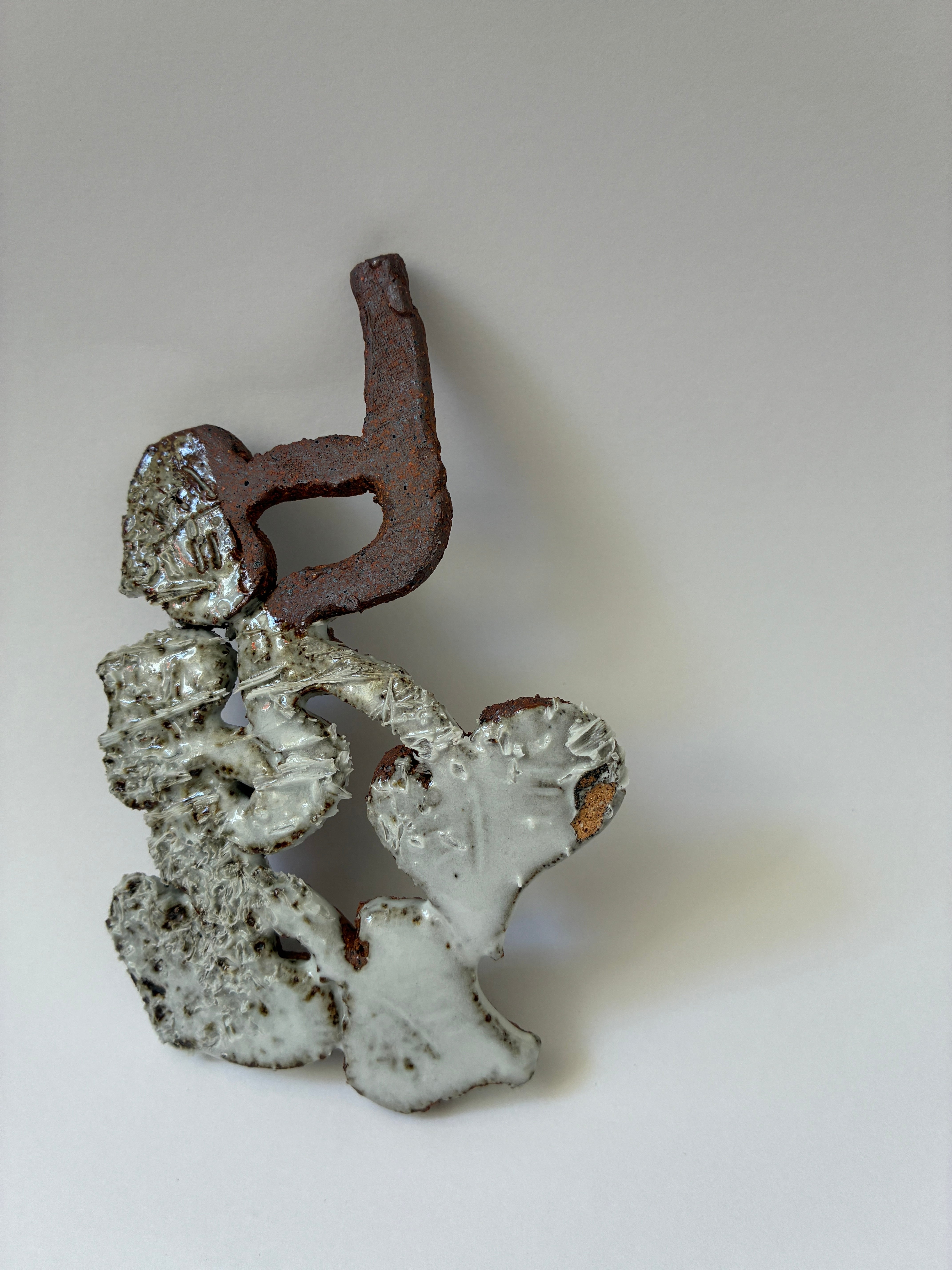 サイズ12cm×5cm×5mm 赤土に乳白 焼く際に、籾殻や藁を使用。 裏面は金具があります。 壁掛けもできます。