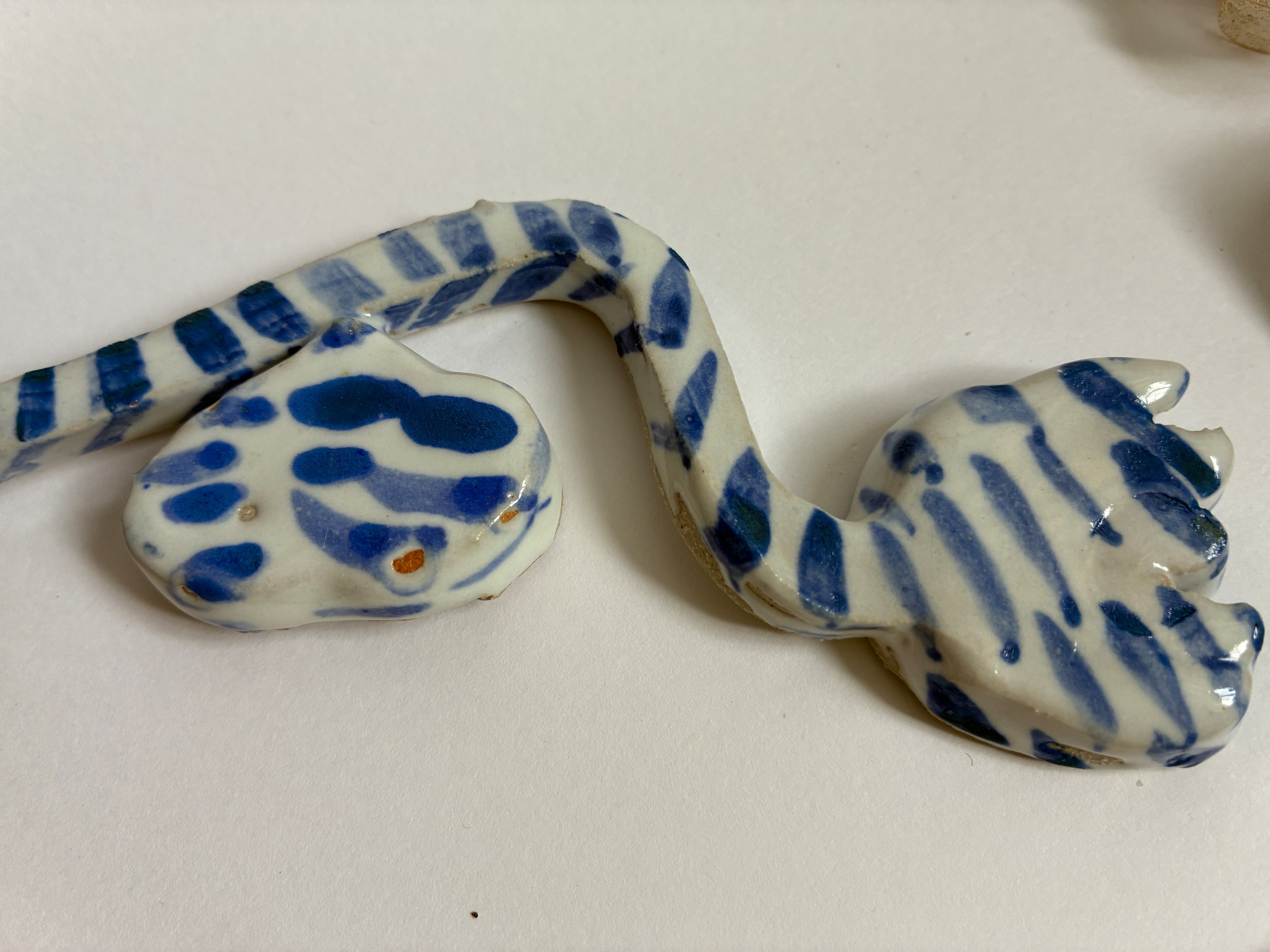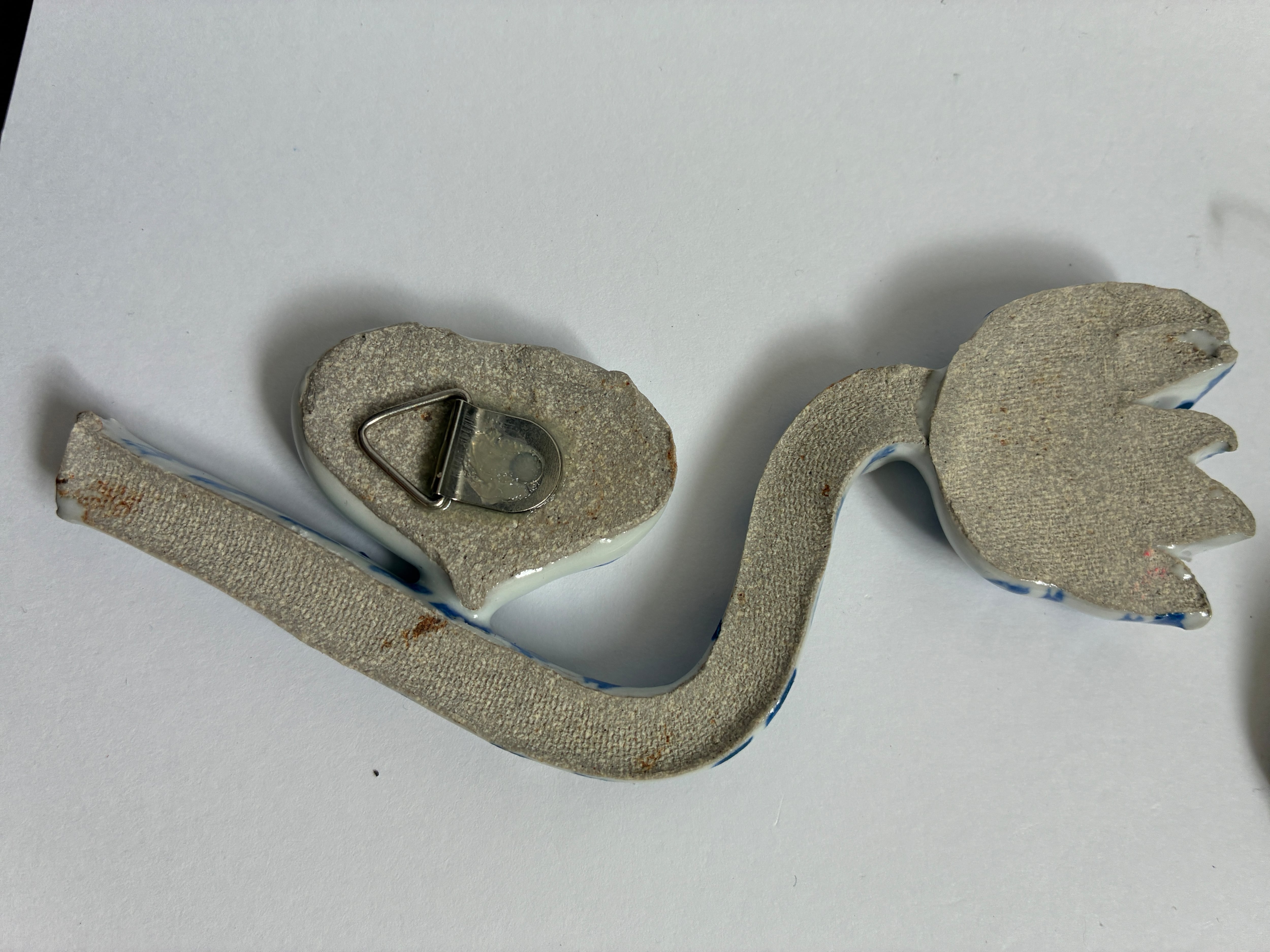 サイズ13cm×6cm×6mm 乳白に青線 くねっとしたチューリップのような花